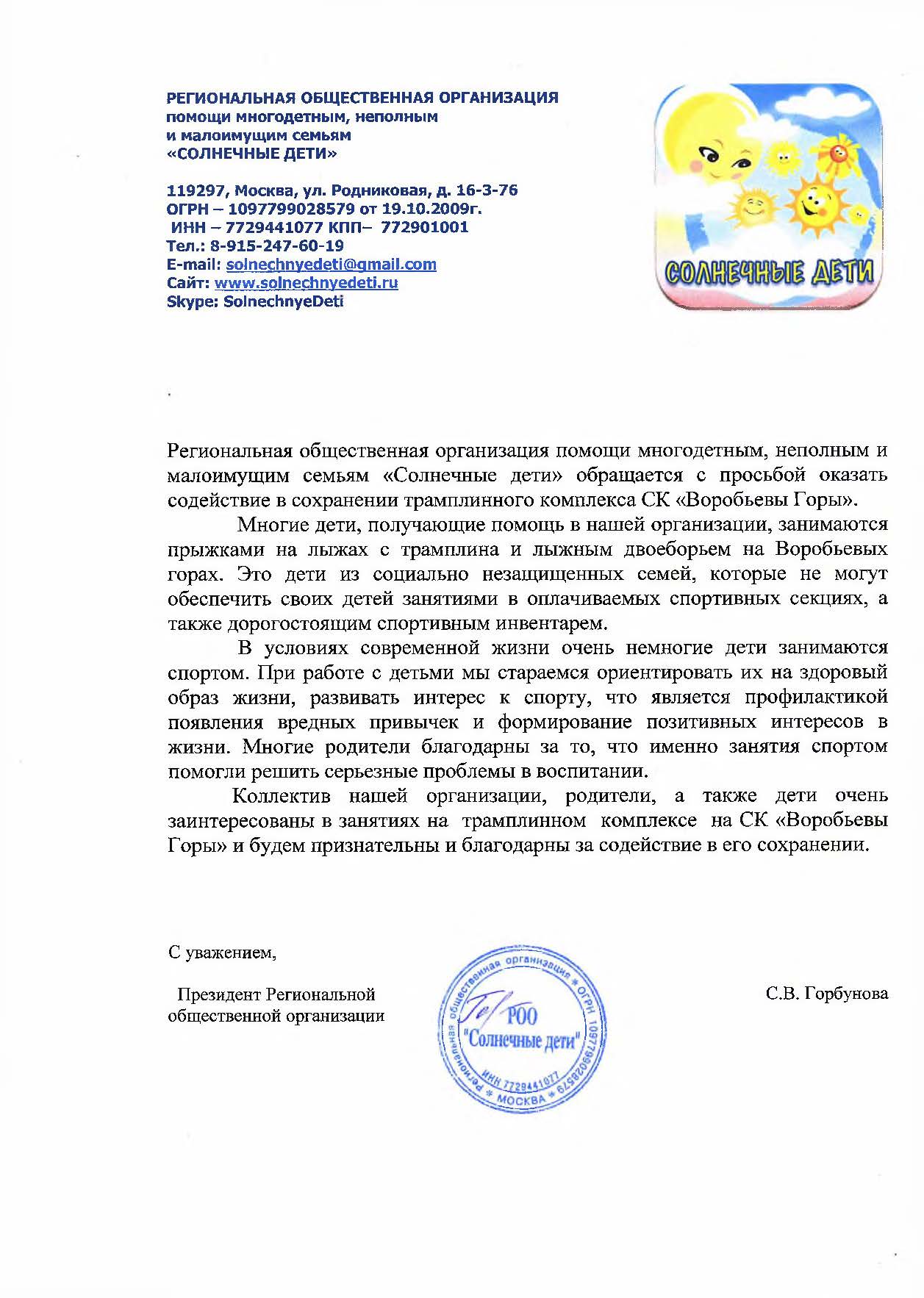 просьбой о сохранении комплекса трамплинов на Воробьевых